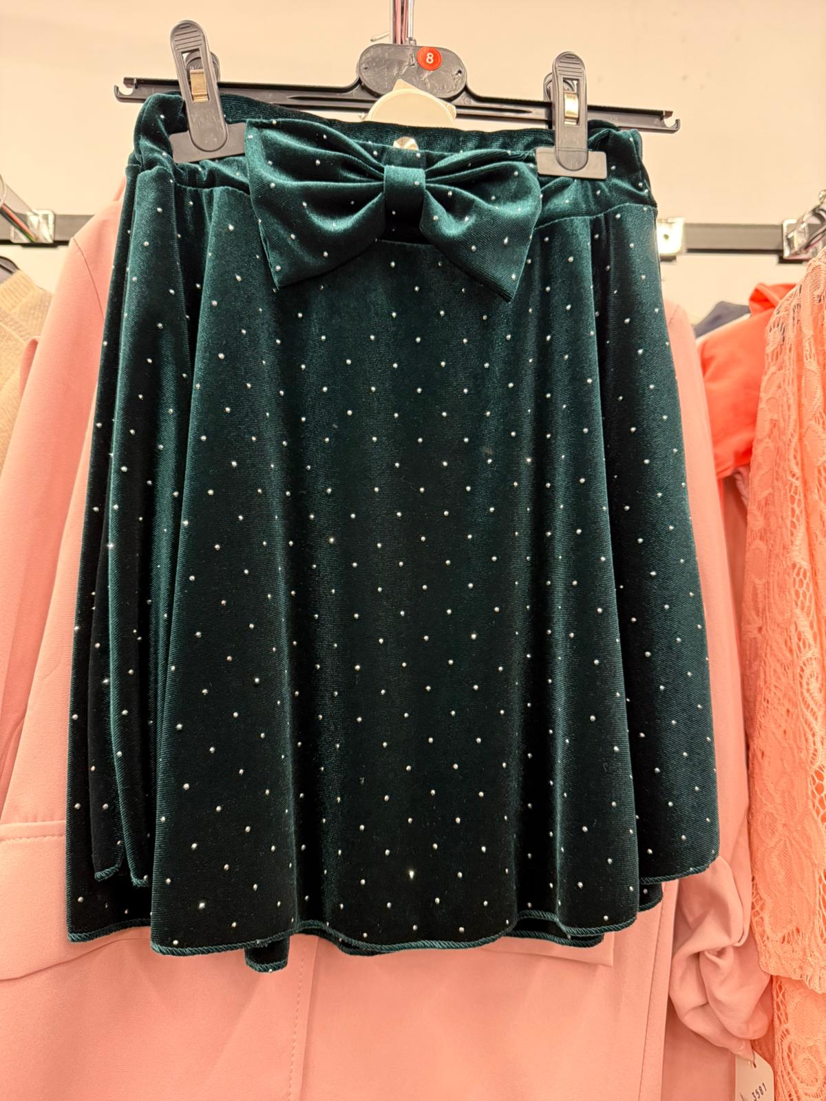 Fustă Catifea Verde cu Fundă și Sclipici