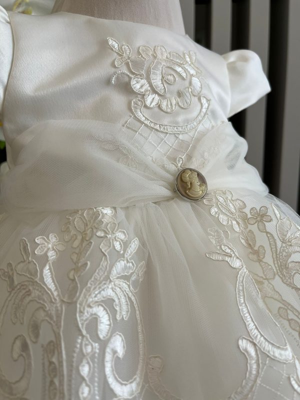 Suntem incantati sa va prezentam noua noastra rochita de botez cu dantela pentru fetite. Aceasta rochita a fost creata cu atentie pentru a oferi o opțiune elegantă și delicată pentru acest moment special.