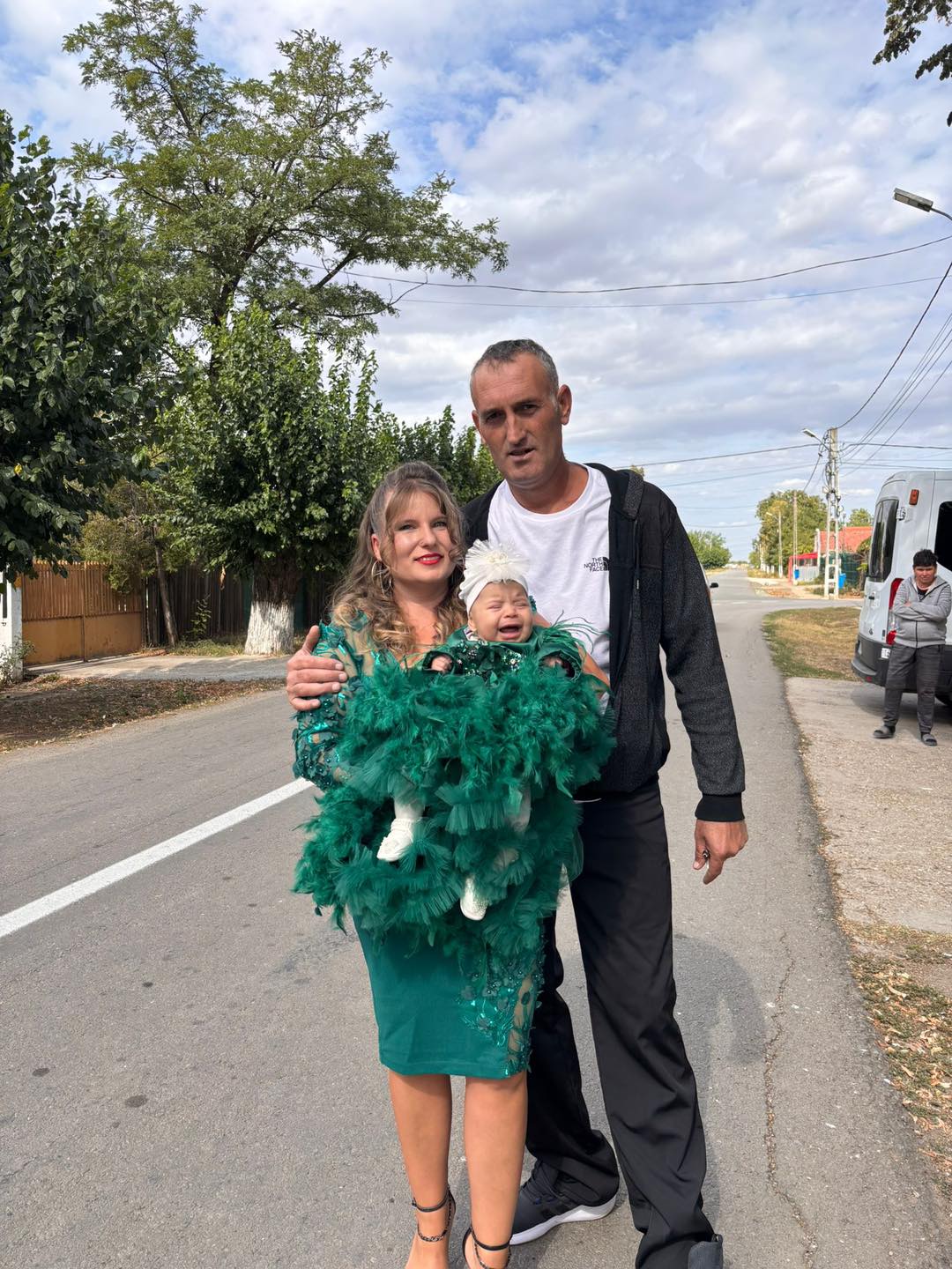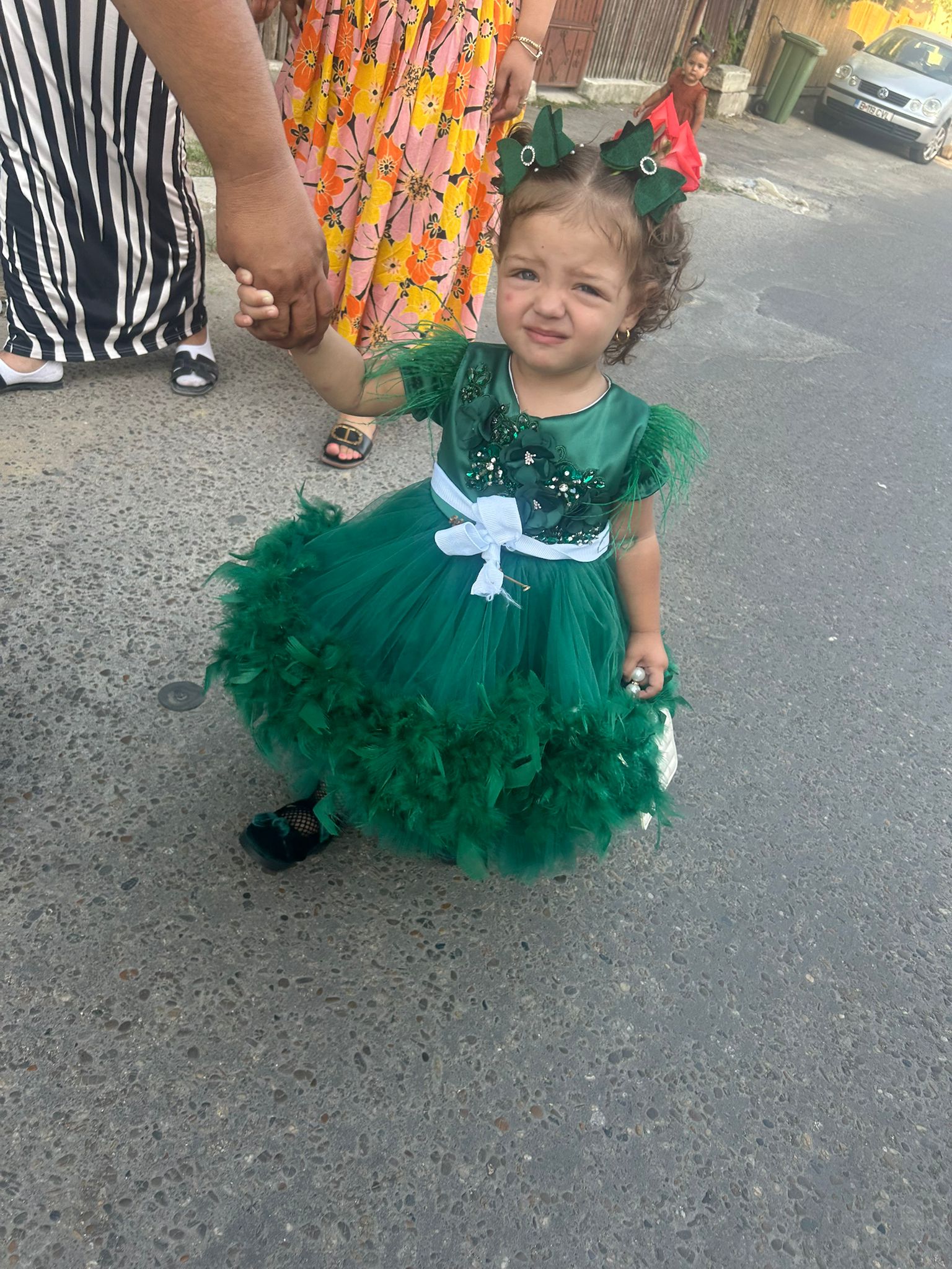 Tinuta este intregita de bentita cu strasuri oferita cadou la masurile mici pana in 12 luni.